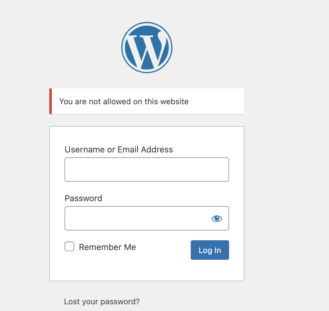 Copy and add the code to the end of the functions.php file. The customised login hint ” You are not allowed on this website” will be displayed on the panel